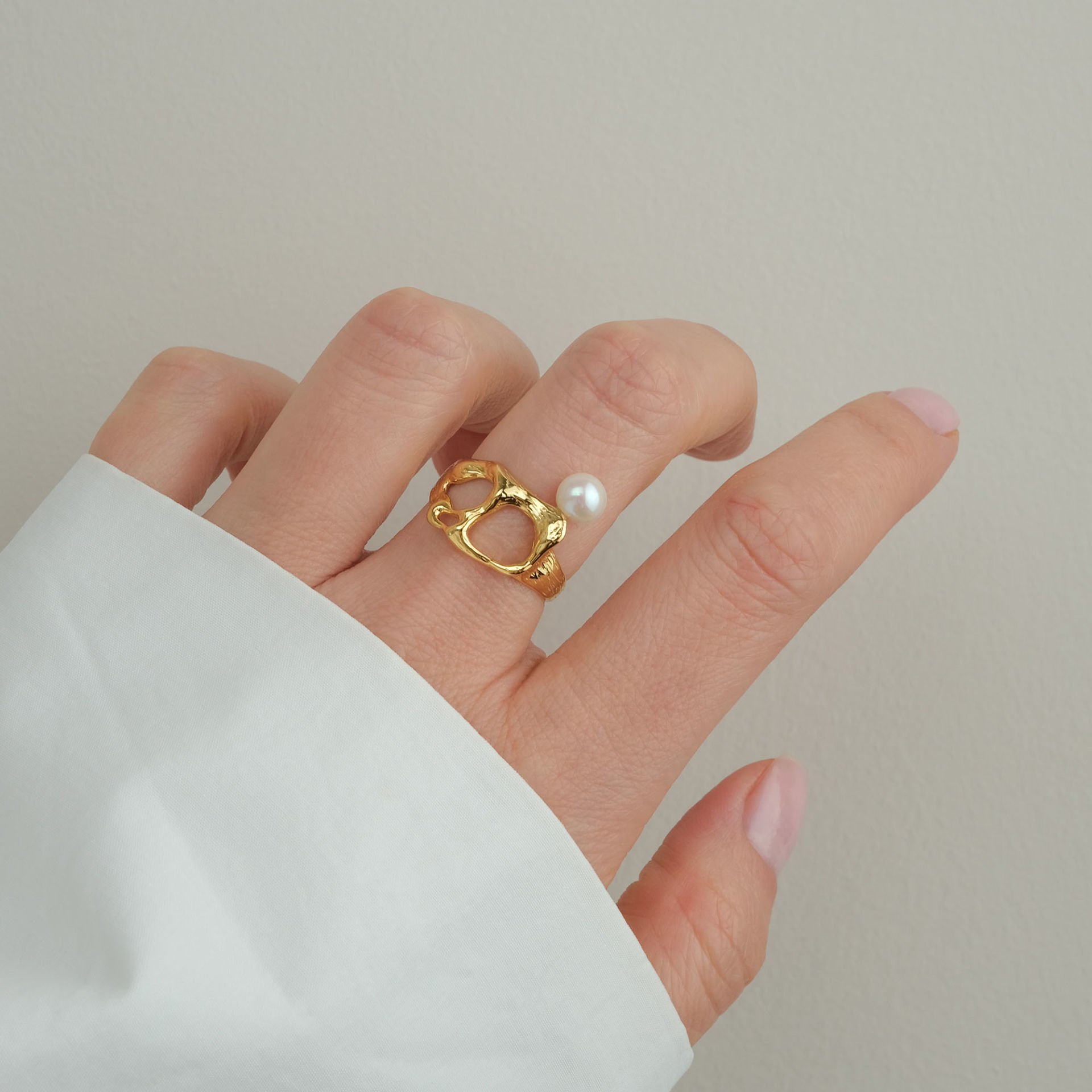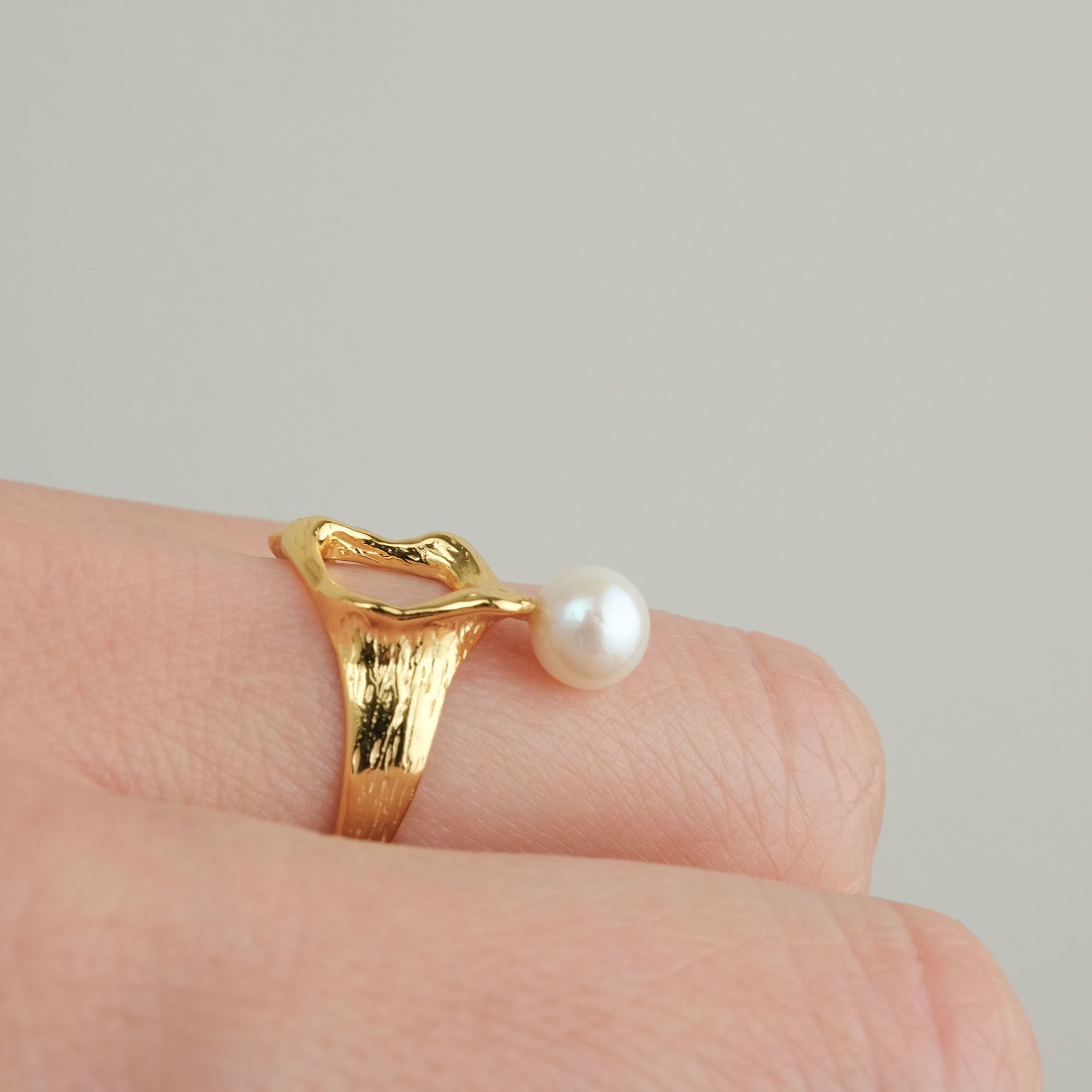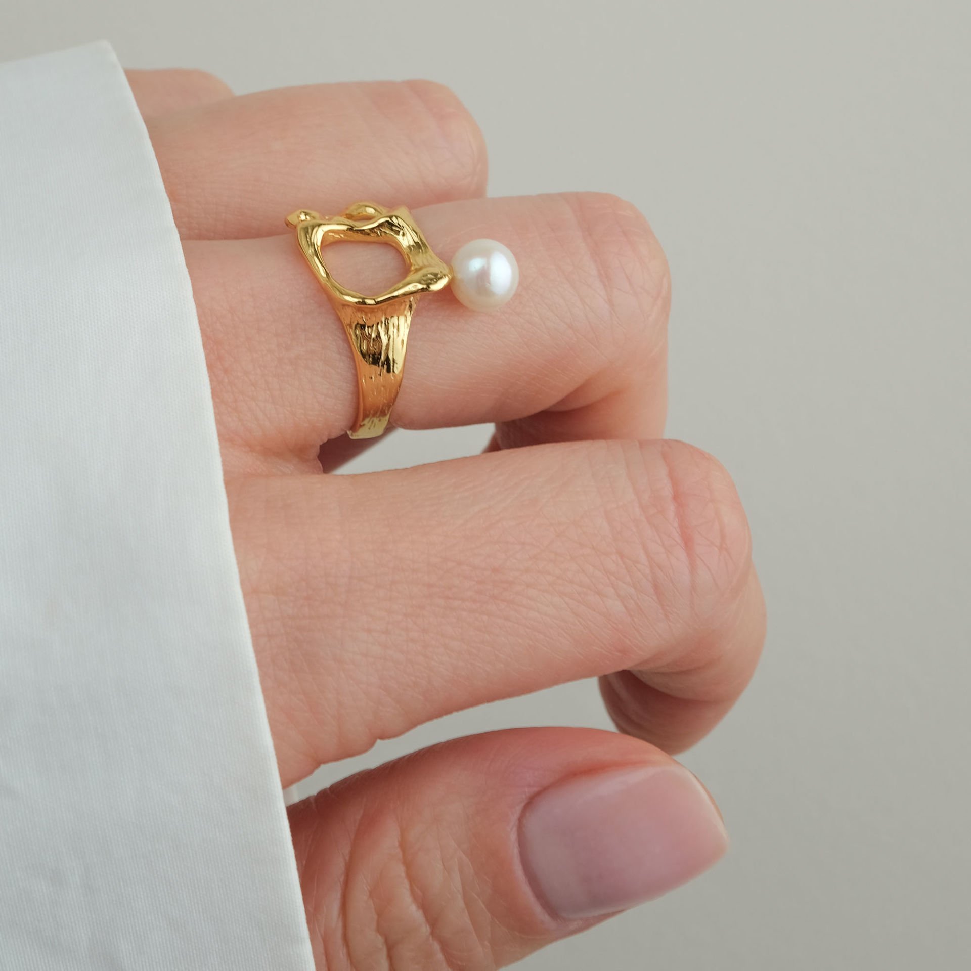 Angelika Doğal İnci Taşlı Gümüş Yüzük - incin narin ve saf cazibesi avangart tasarım ile birleşerek, modern ve şık doğal taş yüzük oluştu.