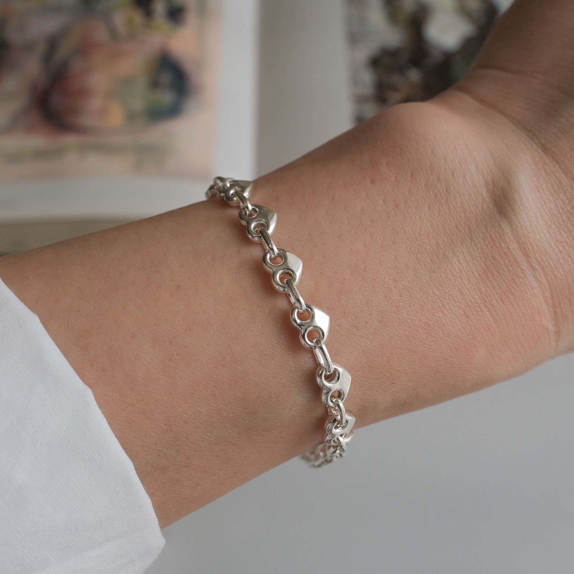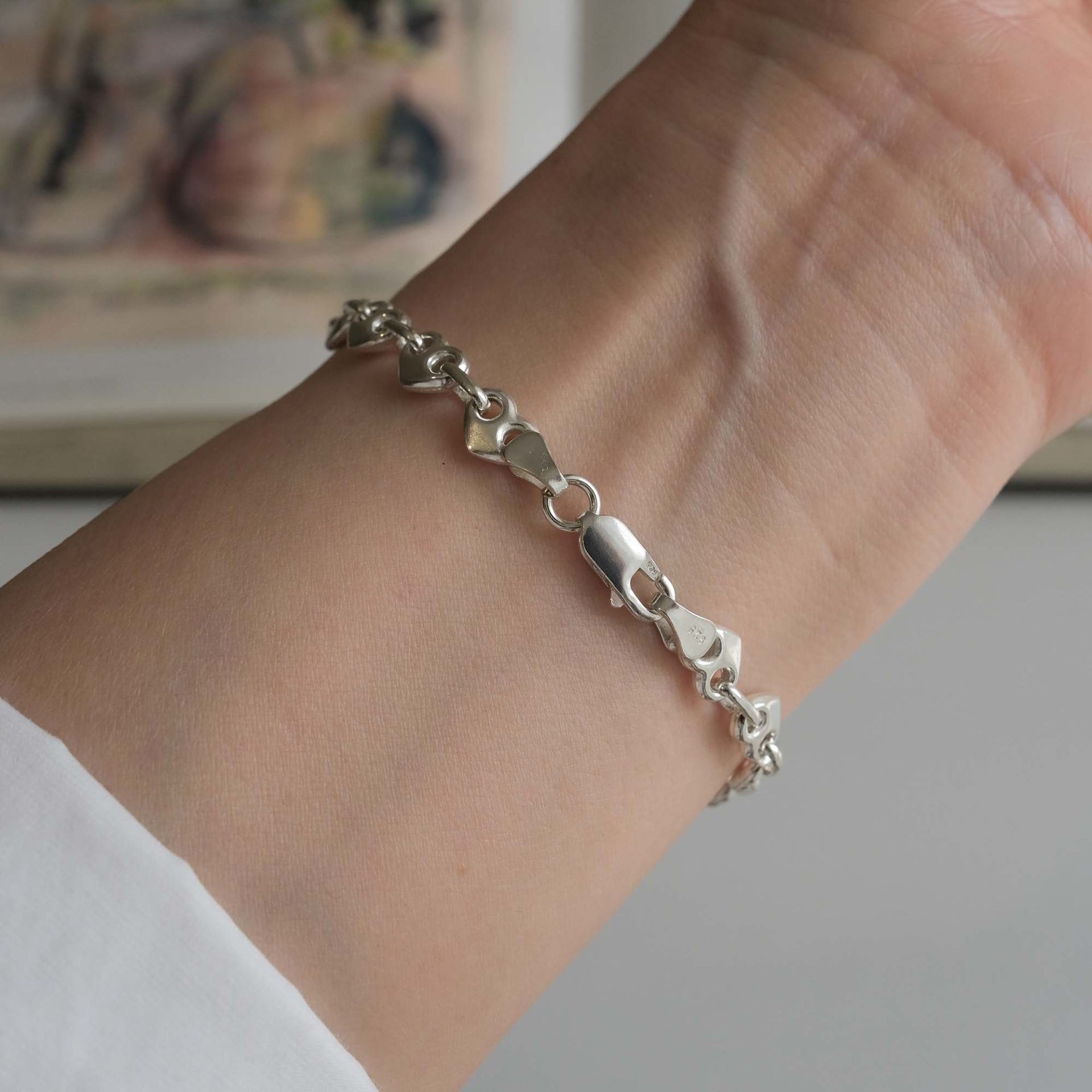 Kalp Detaylı Gümüş Bileklik