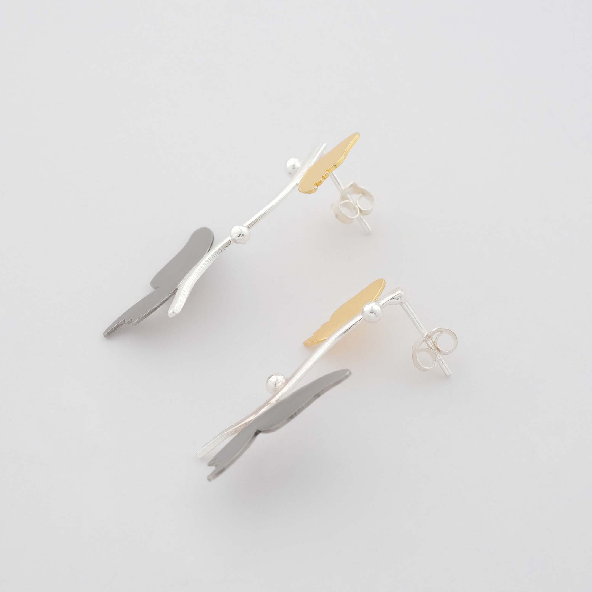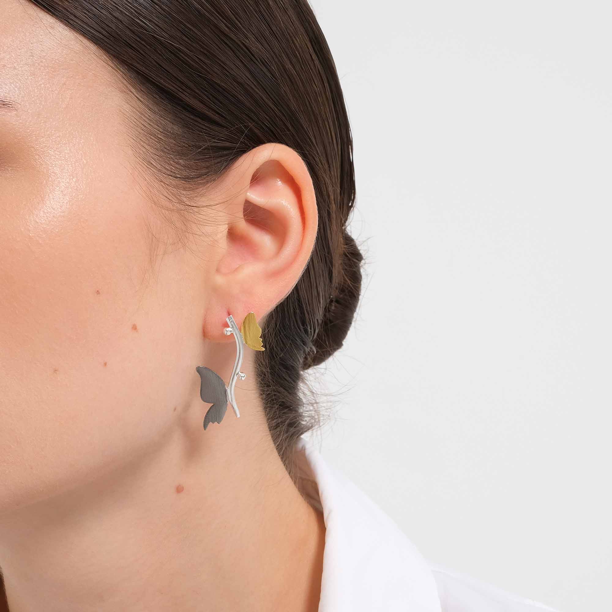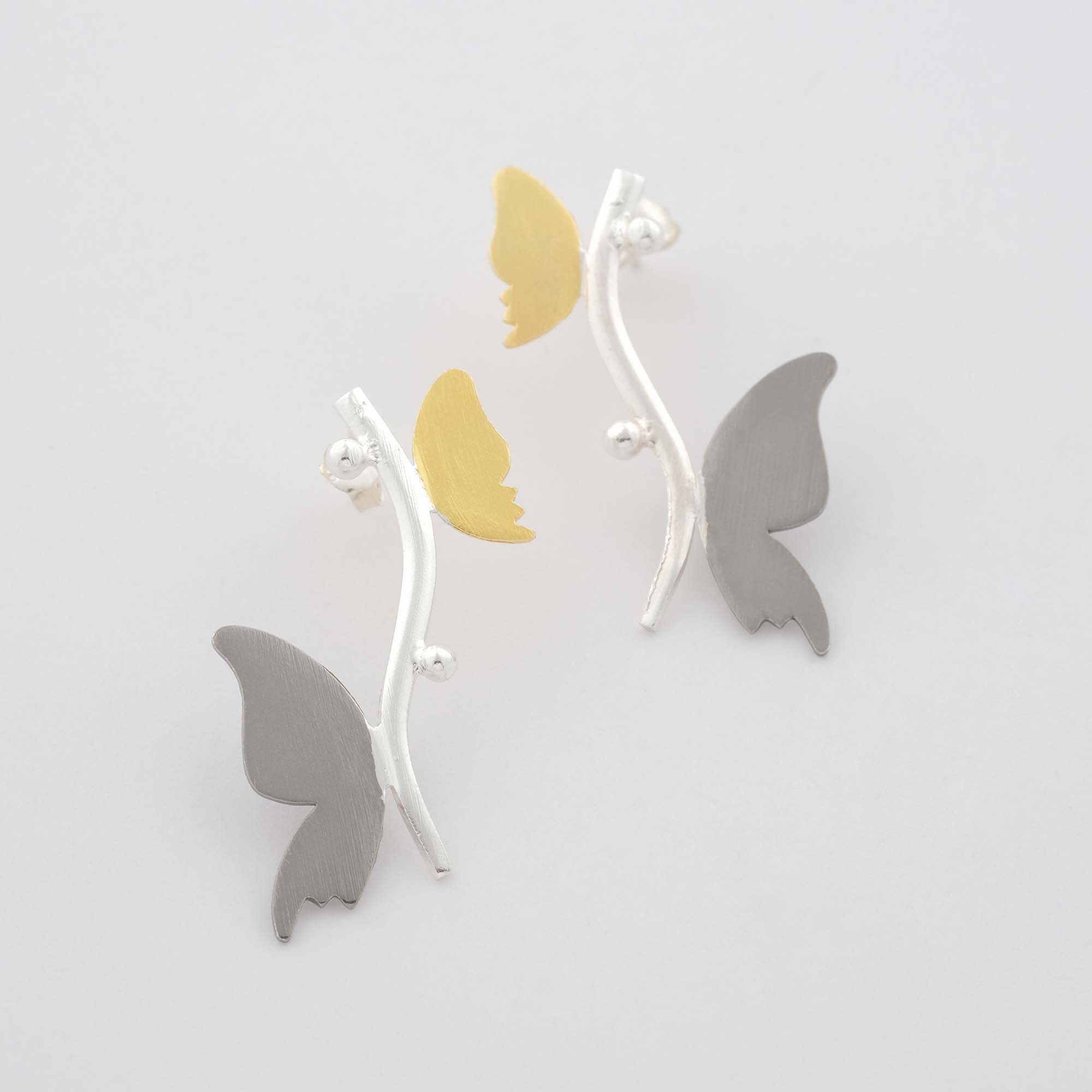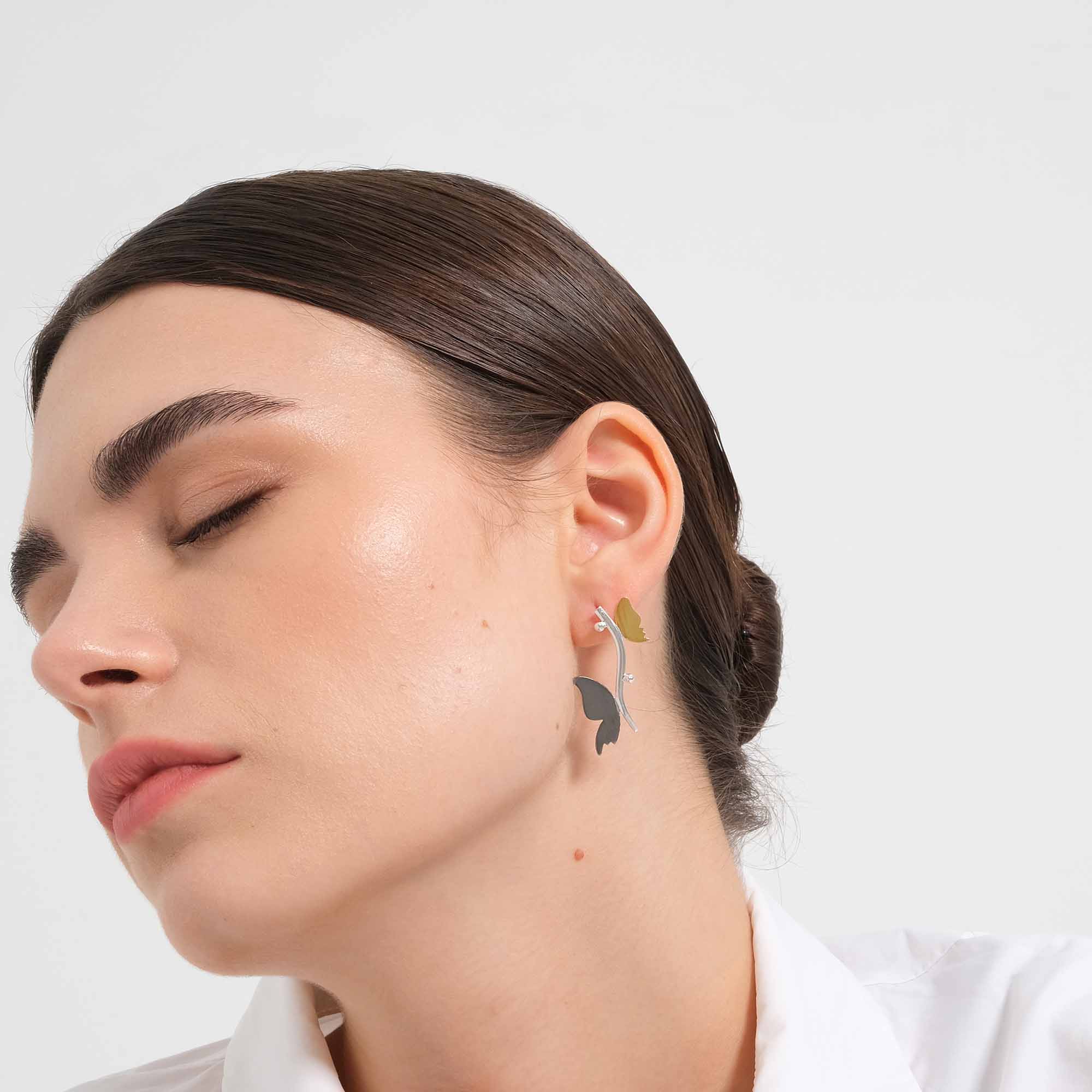 Kelebek Kanat Detaylı 925 Ayar Gümüş Tasarım Küpe