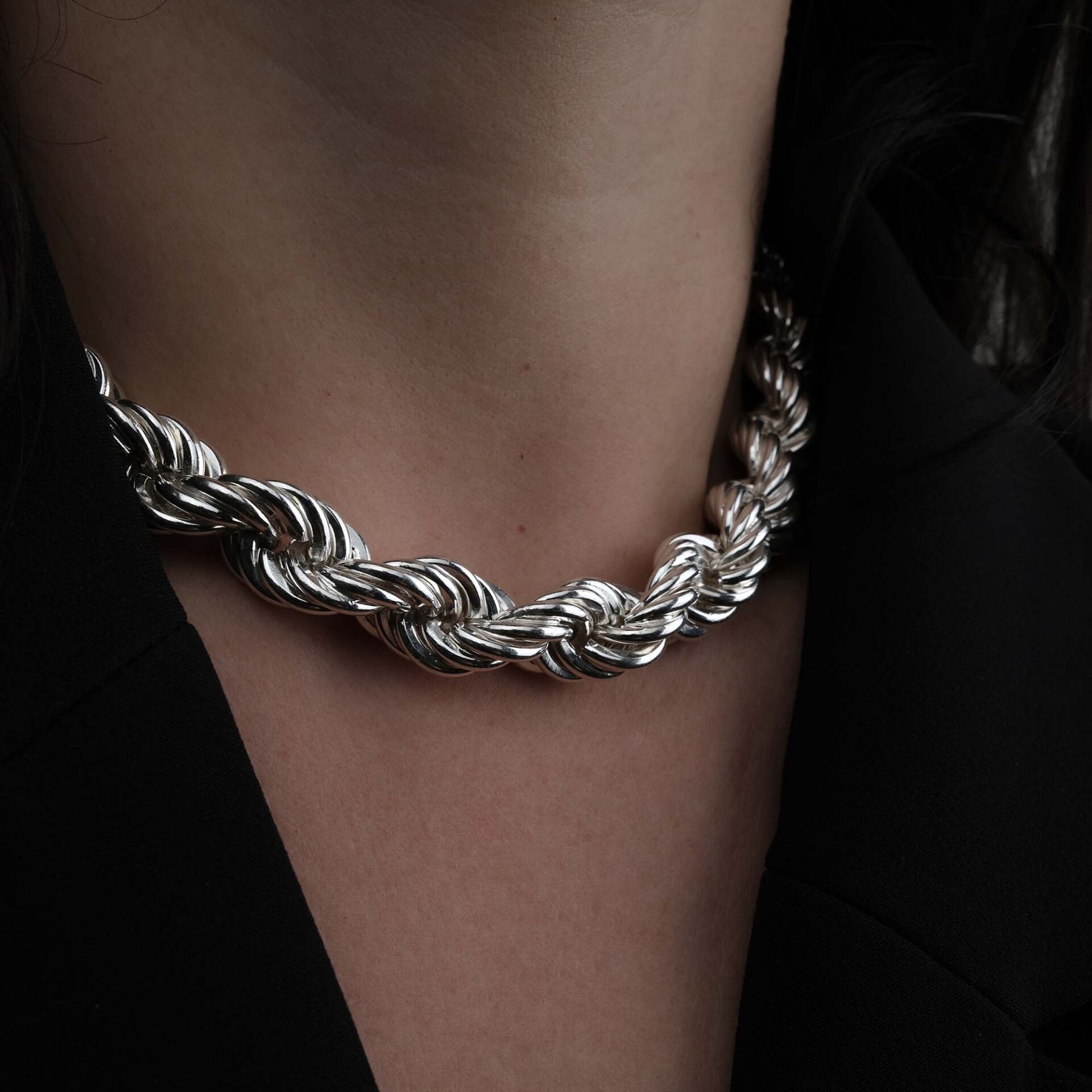 Loya Örgülü Kalın Gümüş Kolye