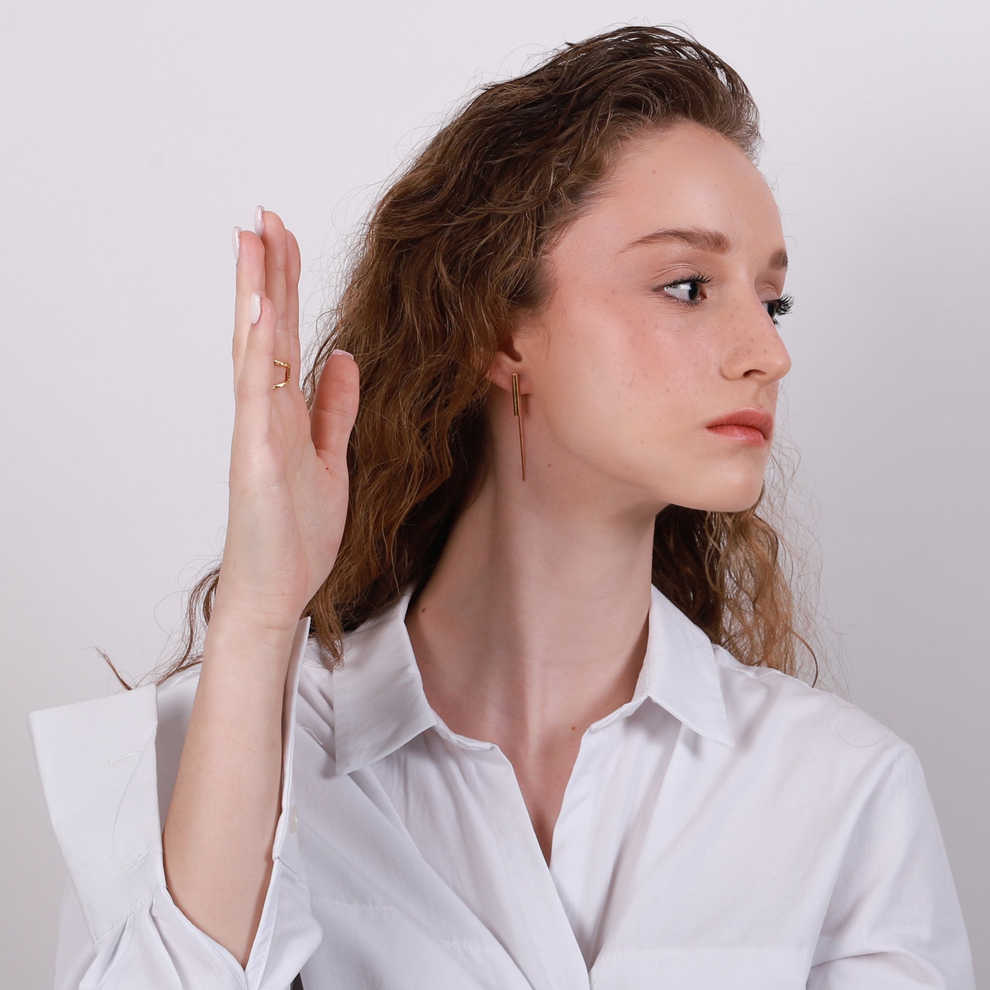 Yalın, ince çizgileri ile elegant görünümün modern yorumu - Nata Minimal Çubuk Küpe sadeliğin yeni simgesi olmaya aday parçalardan biri;